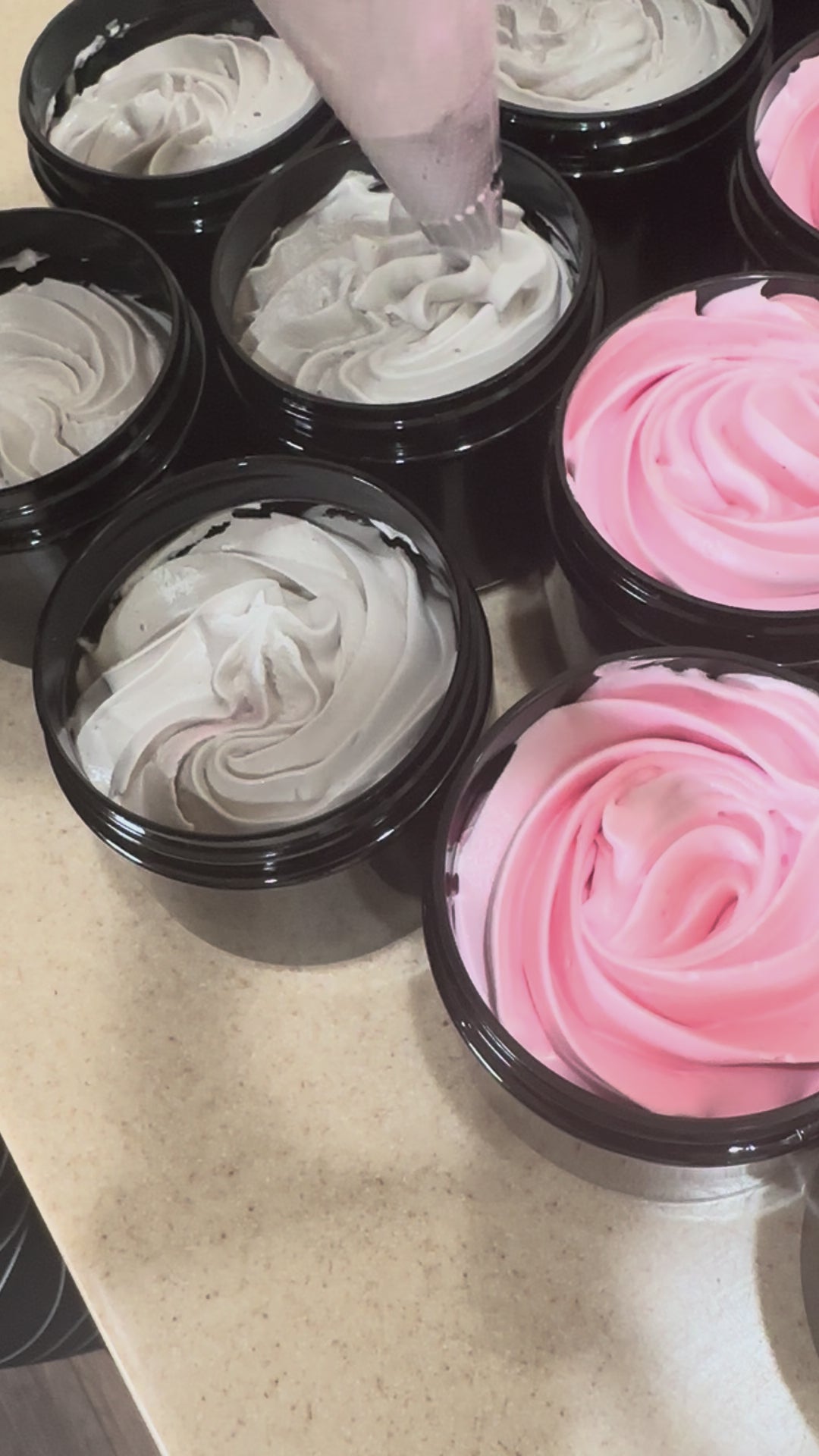 Kokum Butter, Shea Butter, Mango Butter, Hempseed Oil, Golden Jojoba Oil, Avocado Oil, BTMS 50, Optiphen, Mica Powder, Fragrance Oil