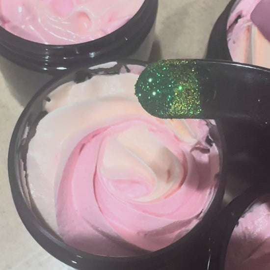 Kokum Butter, Shea Butter, Mango Butter, Hempseed Oil, Golden Jojoba Oil, Avocado Oil, BTMS 50, Optiphen, Mica Powder, Fragrance Oil